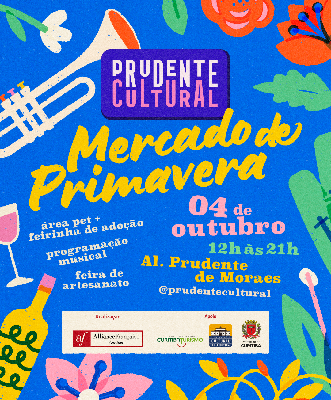 No dia 04 de outubro, a charmosa Alameda Prudente de Moraes volta a se transformar em um verdadeiro polo de cultura, arte e sabores com a Prudente Cultural – Edição de Primavera, evento que reúne o melhor da cena cultural curitibana com uma programação pensada para toda a família. Como de costume, a Aliança Francesa de Curitiba estará com suas portas abertas, oferecendo uma série de experiências gratuitas e bilíngues ao longo do dia.