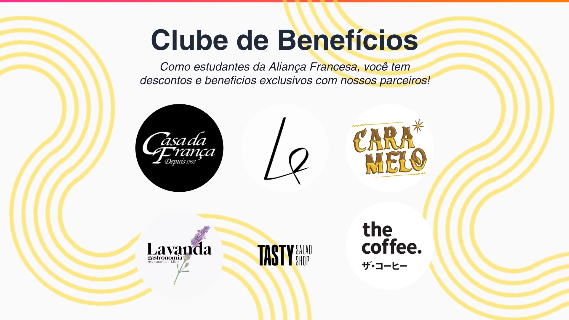 O Clube de Benefícios da Aliança Francesa de Curitiba é uma rede de parcerias com empresas que oferecem descontos exclusivos, que variam de 5% a 20%.