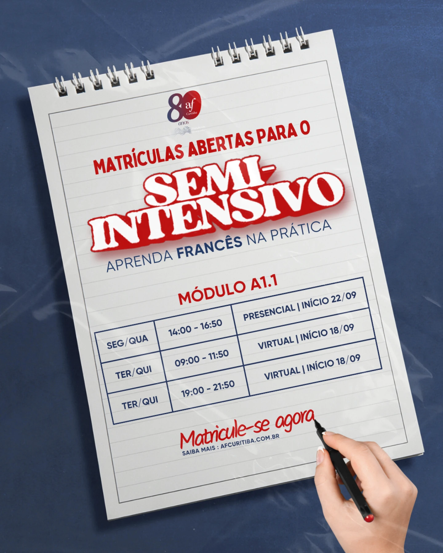 Os cursos Semi-Intensivos da Aliança Francesa de Curitiba têm como objetivo integrar o aprendizado do francês no cotidiano de forma equilibrada com outras atividades. Com uma carga horária semanal flexível, as aulas são interativas e oferecem acompanhamento personalizado, utilizando o método exclusivo da AF Brasil e uma pedagogia moderna. As turmas são projetadas para garantir que o foco esteja sempre no aluno, promovendo um ambiente de aprendizado dinâmico e colaborativo.